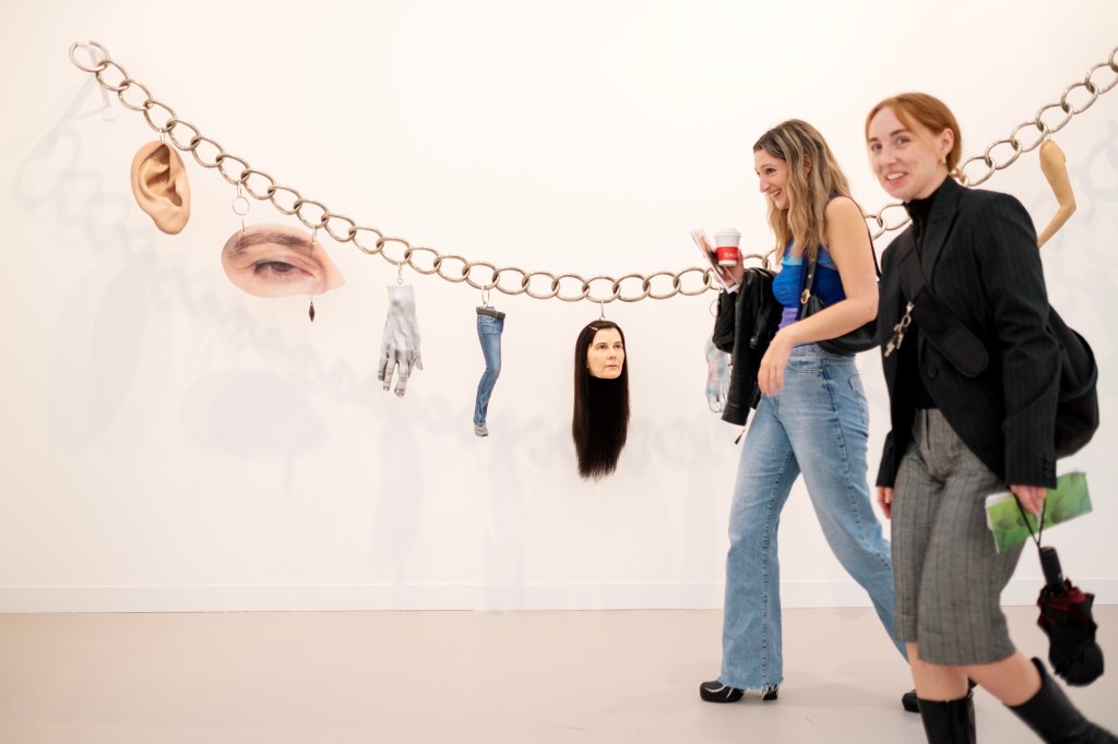 Gillian Wearing’s “My Charms” at Gallery Maureen Paley showcased a fragmented self-portrait, exploring the Surrealist theme of fragmented bodies while avoiding objectification. Through various scales and finishes, Wearing created a fantastical ambiance, intriguingly altering perceptions of the human form.