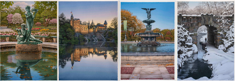 (left to right) Spring, The Burnett Fountain; Summer, Belvedere Castle; Fall, Bethesda Fountain; Winter, The Glen Span Arch, 202