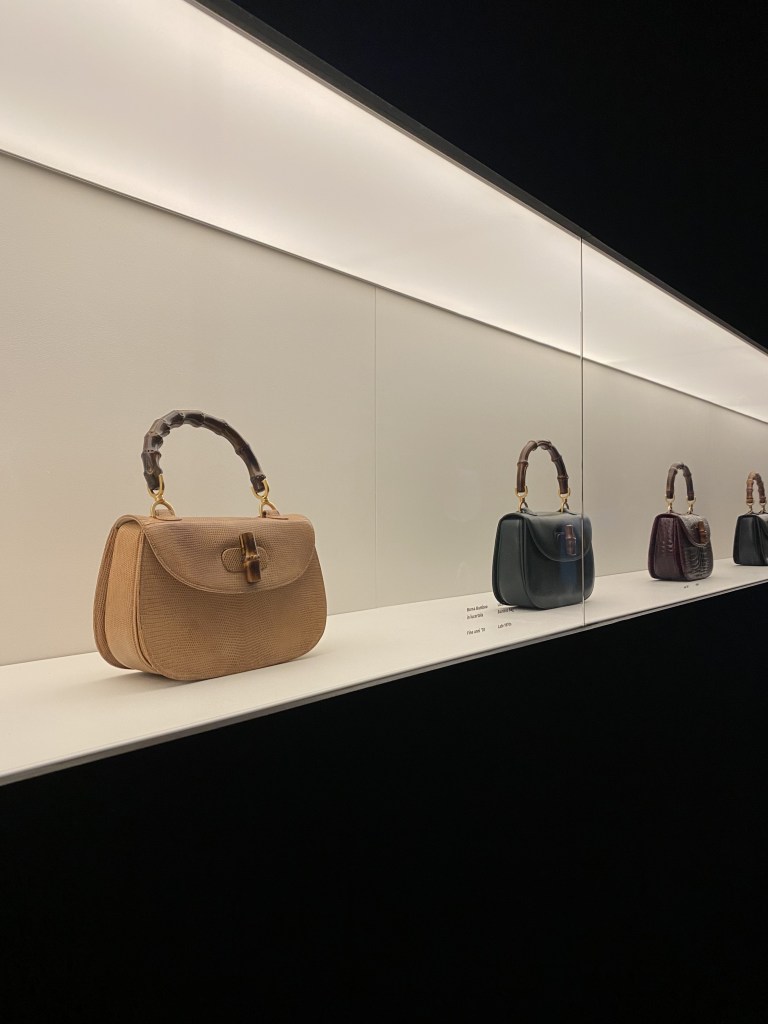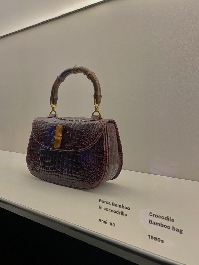 On the second floor, ‘De Rerum Natura’ evokes natural history museum, focusing on animals and gardens, themes dear to Creative Director Michele. Noteworthy is the Gucci Flora scarf, originally designed in 1966 for Princess Grace Kelly. The museum journey culminates in ‘Ephemera’, a space retracing Gucci’s history through objects, videos, and memories.