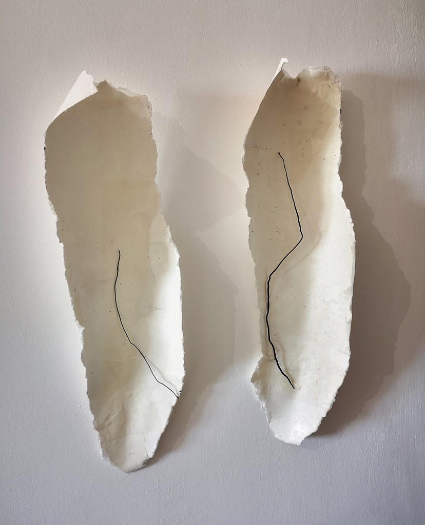 I use different types of paper in different ways, I have been able to learn about its limitations and its great possibilities, working with it I have discovered its fragility, its lightness, it can break, but it has its own resistance. The paper shapes the dialogue between the fragility of matter and the fragility of existence. In recent years it is my favourite medium, it has a memory that is lost in time.