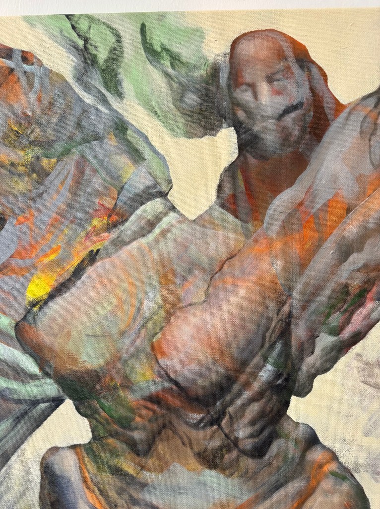 Højgaard’s characters, often perceived as embodiments of exaggerated masculinity, challenge conventional notions of gender and ethnicity. Despite their muscular physiques, these figures conceal an inner fragility and sensitivity. They are thrust onto a stage, forced to play roles they never anticipated, resulting in distorted forms that reflect this tension. This metaphorical representation invites viewers to look beyond the surface and uncover the nuanced emotions and themes hidden within.