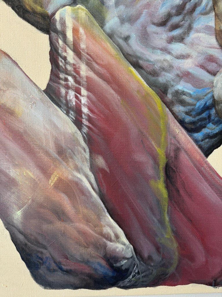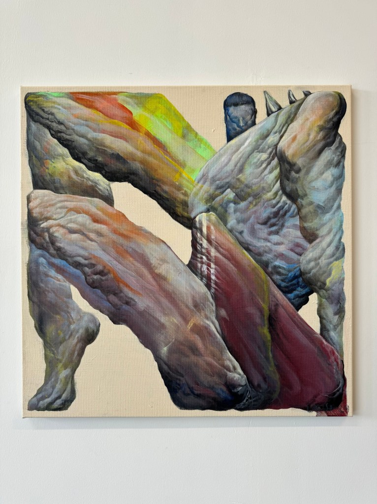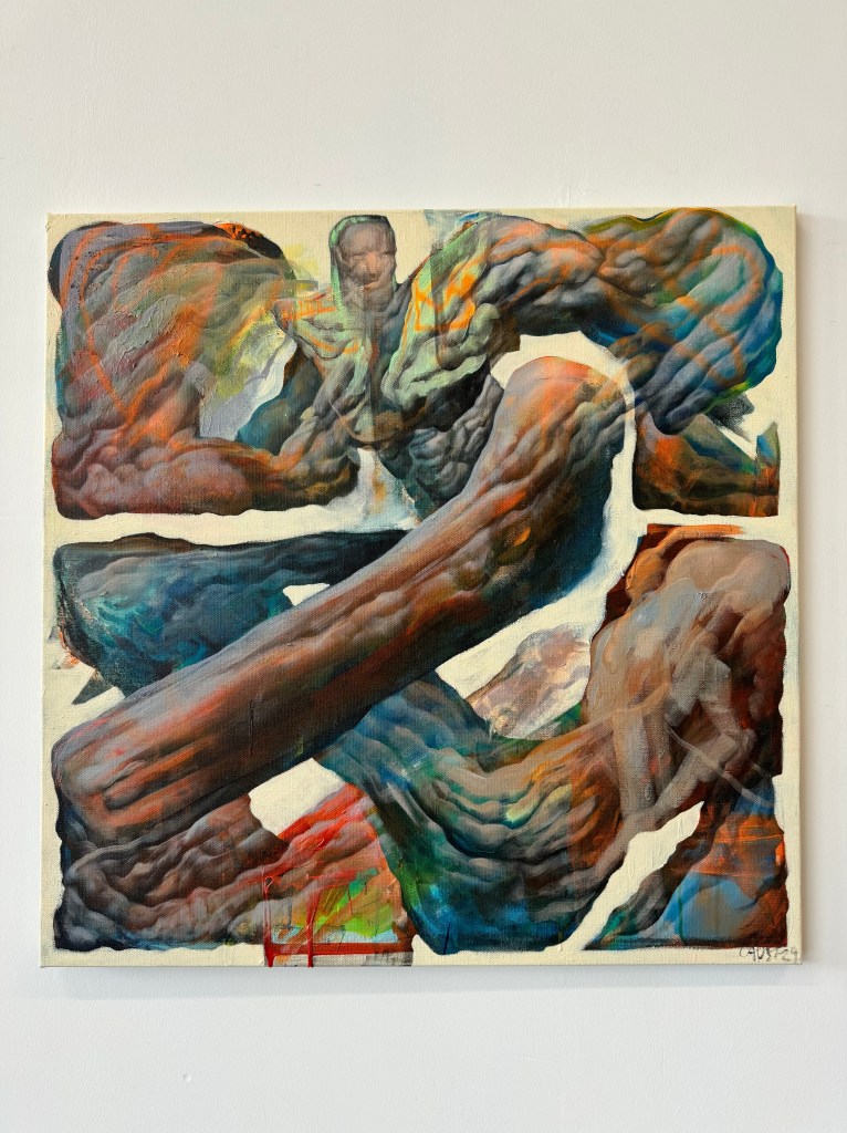 “I have been working intuitively, allowing my curiosity for shapes and colors to guide my process. The common theme for the three artworks is human transformation inspired by the metamorphosis of butterflies. I tried to incorporate this organically driven process not only in my visual language but also in the way I worked with the painting. Pure intuition and letting the shapes that appeared organically define the final motive.” – Laust Højgaard