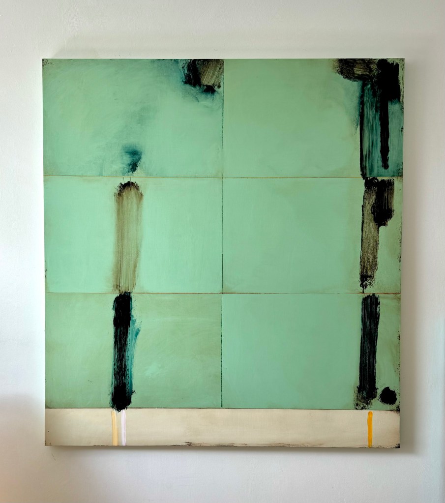 He works predominantly in oils, but will use enamel paint and different textures at the beginning of the painting process, producing a final piece which is raw and layered. He trained and obtained his degree in Fine Art in 2004 at Cardiff School of Art. In 2022, Adam was selected by the artist Sean Scully to exhibit alongside him at a group show in London.