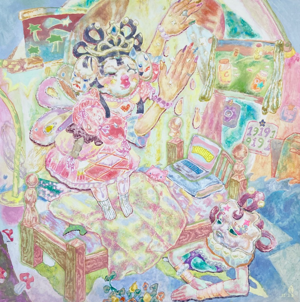 I just had my first solo show at Andand gallery in Los Angeles in May which I loved working on–I was so lucky to have so much creative freedom with the space and to be able to co-curate a dreamworld with my gallerist, Edie Xu. I also just showed with La Beast Gallery, also in LA alongside some extremely wonderful artists –that was the first larger scale work that I’ve ever shown so it was super exciting to see it in space and in conversation with other work that I admire so much. I don’t have any specific shows planned at the moment, but I am really excited for an upcoming project–I can’t say too much about it yet but it involves wearables ❤