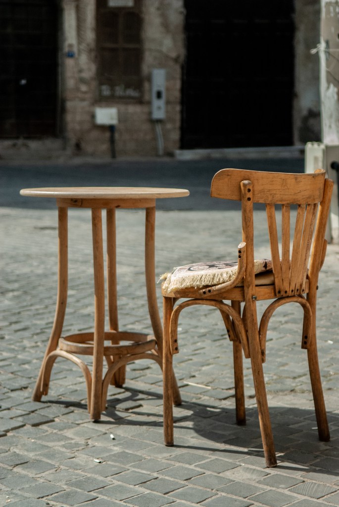 Scattered across the city, at street corners, in front of small shops, under canopies of bougainvillea, were old wooden chairs.