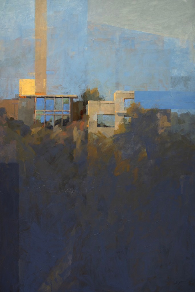 Recently, I saw a Clyfford Still piece at SFMOMA while on a trip in San Francisco. He was painting the abstract sublime, referencing nature with his organic shapes. I loved how I could get fully immersed because of the size of his pieces. Looking at an impressive house on a hill makes me feel like a Caspar David Friedrich character gazing into the abyss of nature. It’s beautiful but also terrifying. The idea of home is full of positive emotions like family experience but also daunting ones like the immense financial responsibility. Large scale canvases are just a great way for me to capture that overwhelming sublime-like feeling in paint.