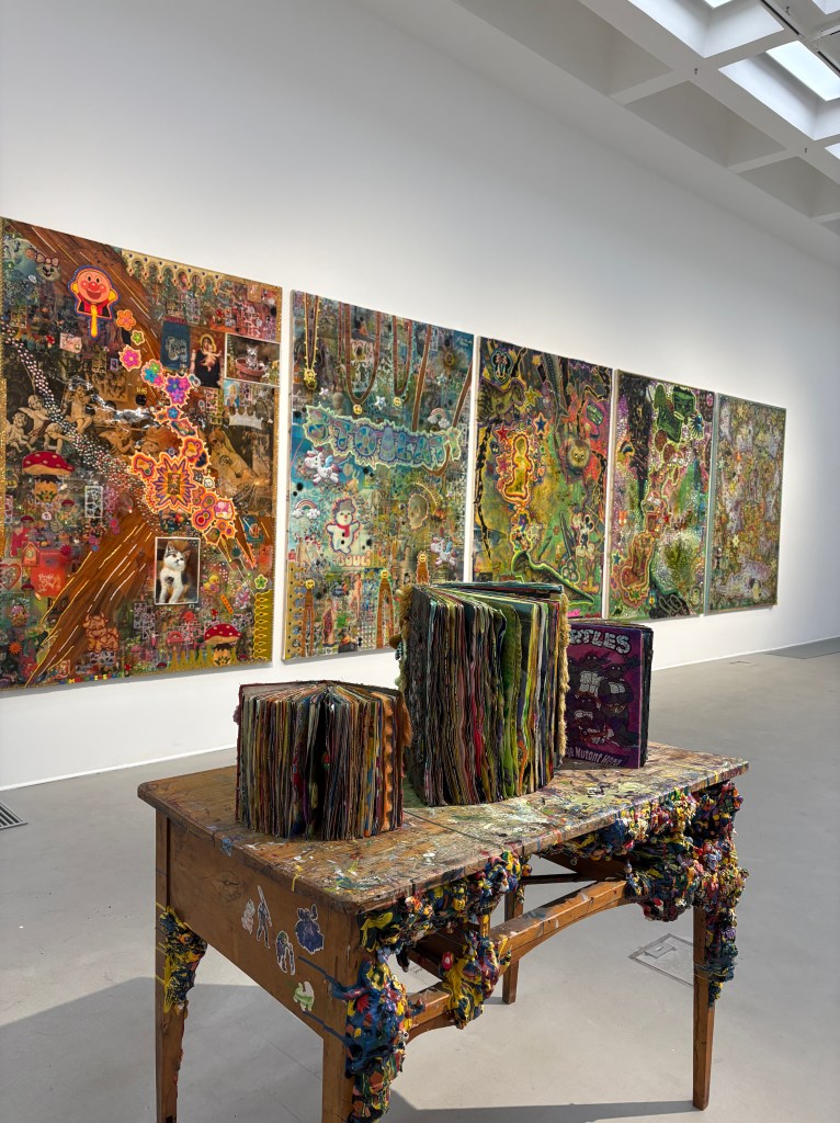The exhibition spans various stages of Antoniak’s career, presenting a rich selection of spatial installations and paintings, including two new painting cycles created specifically for this show. Among the highlights is Magic Garden, a bespoke spatial installation that encapsulates earlier works, offering a kaleidoscopic reflection of her evolving artistic vocabulary. As curator Małgorzata Jędrzejczyk explains, “The title Elementary Particles operates on multiple levels. Literally, it refers to the small components of Antoniak’s art—objects from her childhood, pop culture shapes, and mass-produced forms. Metaphorically, it evokes primal visual and tactile memories, the first encounters with the material world that shape us.”